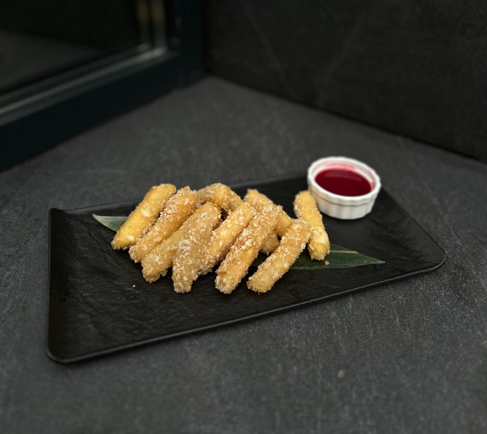 - ▶ Склад: сирні палички з моцарели, сухарі панко, соус із журавлини.